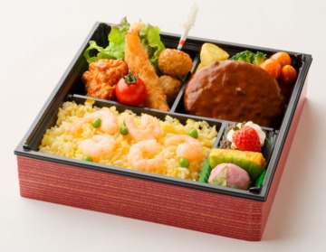 お子様用には「お祝い弁当 ゆめ」、大人の方用には「ロイヤルシェフ 三段御膳御膳」をお選びいただきました。