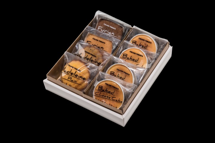 ・ベイクドチーズ、フリアン(プレーン・コーヒー)、マドレーヌ(プレーン、紅茶)の詰合せ。